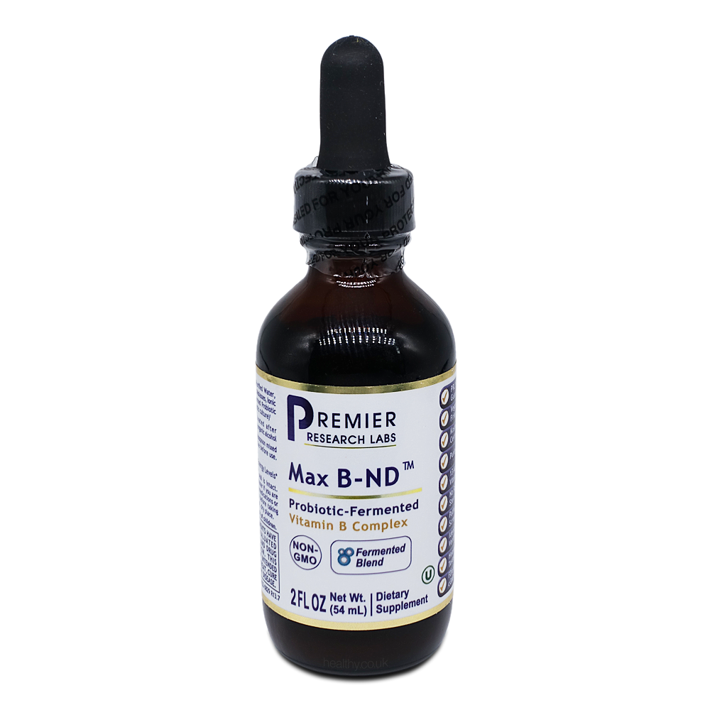 Max B-ND by Premier Research Labs is a naturally-sourced, whole food, probiotic cultured, end-chain liquid Vitamin B complex.