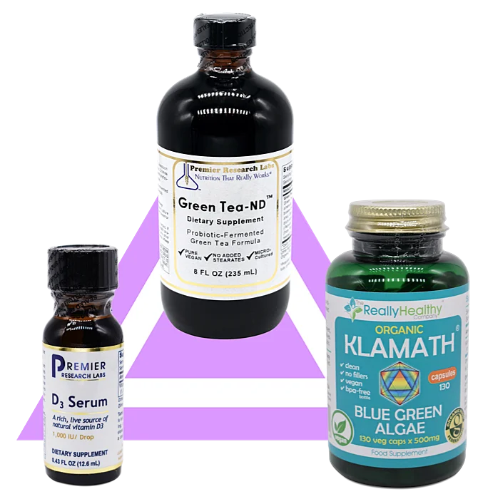 The second group recommendation is for those who feel fatigued and need a physical/psychological uplift. The primary component is Green Tea extract which can help energise our systems and increase energy production. The form of Green Tea Extract that we use is a highly absorbable liquid one. In addition, this pack has organic Klamath Blue Green Algae as a whole food source of nutrients as well as a natural Vitamin D3, which is vital during the winter months of little sunlight.